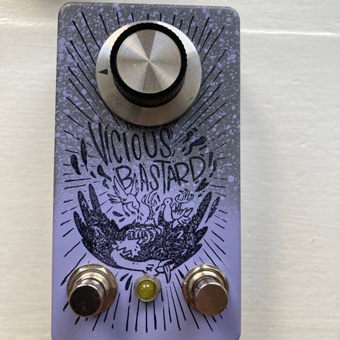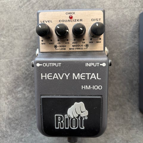 Riot SD-100 Soft Distortion guitar effektpedal med justerbare kontroller for level, sustain og distortion. Sort og orange farve, kompakt design. I perfekt stand