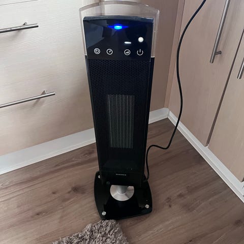 Adax VV31 varmeblæser med rund form og gitter foran. Produktet er designet til opvarmning af mindre rum og har en kompakt størrelse, der gør den nem at placere. Farven er sort og hvid. Helt ny og ubrugt.