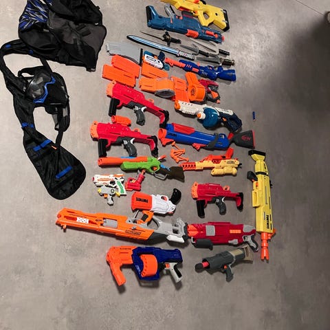 5 nerfguns som vist på billede. Brugte men fin stand. Samlet pris. 150kr. Kan afhentes i Hørsholm.