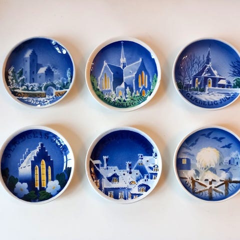 8 stk. Aluminia juleplatter små sælges samlet for kr. 1200,- Platterne fremstår i rigtig god stand dog ser det ud som om platten med jesusbarnet og stjernen er lavet som krakele på forsiden. Måske den skal være sådan. Kan bruges på julebordet til smør f.eks. enkeltvis ved siden af tallerken.