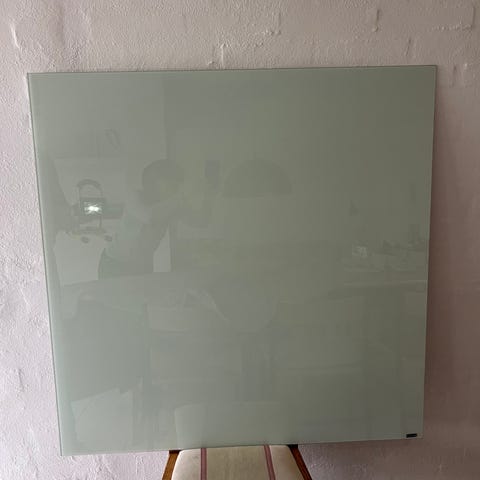 Glas whiteboard tavle.Grå Ø25 cm. Mærket Naga.