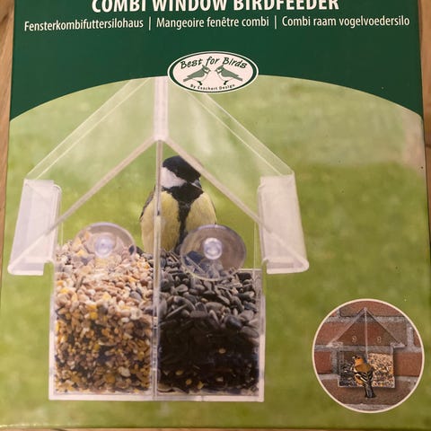 Kig på de søde fugle, når de gufler maden i sig på nært hold! Fuglefoderbrættet sættes nemt fast på ruden med sugekopper.