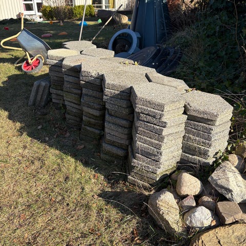 ca. 600 stk. 12 kvm. betonsten 20x10x6 cm. Kan afhentes. Kun samlet.