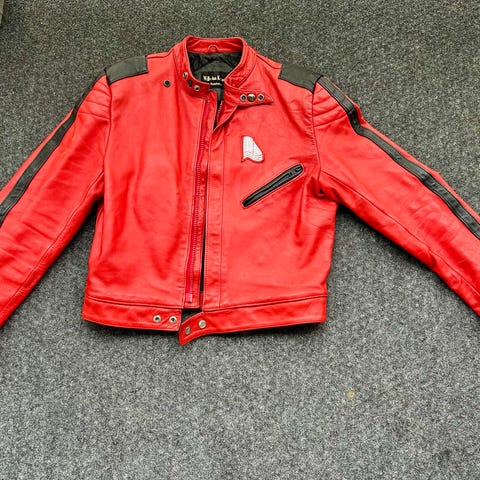 Den fedeste motorcykel jakke fra tyske Wilhelm Krawehl, Hamburg. Størrelse vurderer jeg til at small/medium. Lynlåse tjekket og fundet ok. Høj og tung læderkvalitet. Fedeste farve. Kig forbi og prøv den. Du finder ikke sådan en i den stand ofte. Se mine øvrige annoncer for mange spændende ting