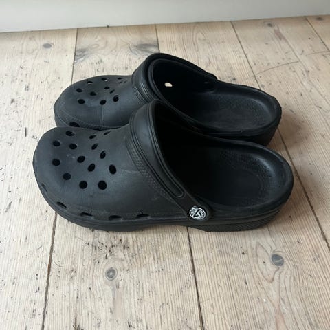 Crocs unisex børnesko i størrelse 35 (er lidt i tvivl om størrelsen, men tror det er 35), blå farve. Fremstillet i let og holdbart materiale med ventilationshuller for åndbarhed. Skoene har en justerbar hælrem for bedre pasform og skridsikker sål til øget sikkerhed. Er ikke brugt meget, men trænger til en vask :)