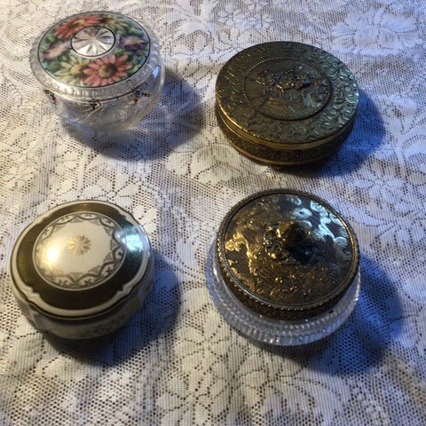 Porcelæn, Gammel fransk bonbonniere. Velegnet til smykker og andre småting eller bare til pynt. Eller til slik. 12 cm i diameter. Den er i fin stand. Den ujævnhed du kan se på billedet er tape, som kan tages af.