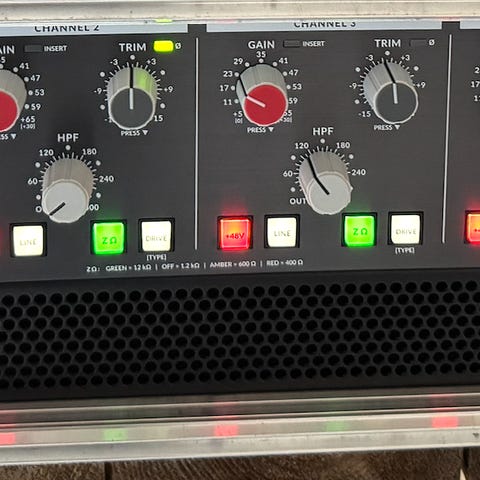 - 3 stk. Presonus Digimax FS enheder (8 stk Class A Mic Preamp i hver enhed. Dvs. ialt 24 Mic Preamp input.) Er koblet sammen via ADAT.