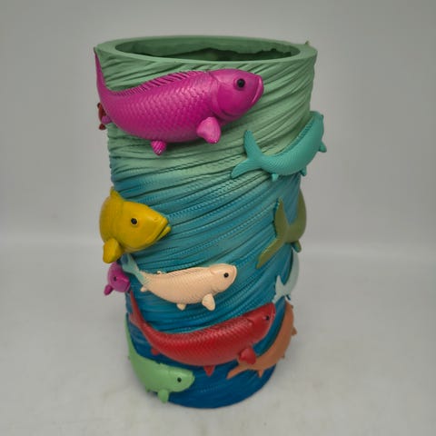 Beskrivelse: Håndlavet dekorationsvase af glaseret keramik. Indersiden er også glaseret. Der kan forekomme forskelle, da vasen er håndlavet. Keramik kan slippe fugt igennem.