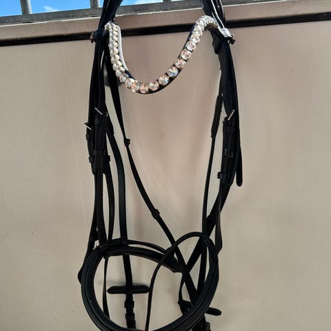 Montar hunter trense i brunt læder med flotte hvide kontrast syninger