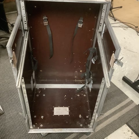 En kvalitets 2U Flight Case fra Road Runner. Der kan monteres enheder i begge ender. Der er en rund plet ved bærehåndtaget (se de to sidste billeder) ellers fremstår den nærmest som ny.