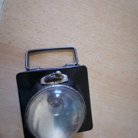 Wonder : Ældre Fransk batteri lygte, fra 1943. Wonder. Type Savoi. Med charmerende patina. Med ophæng til knapper i jakken. Eller på et søm. Sidste inden rust.