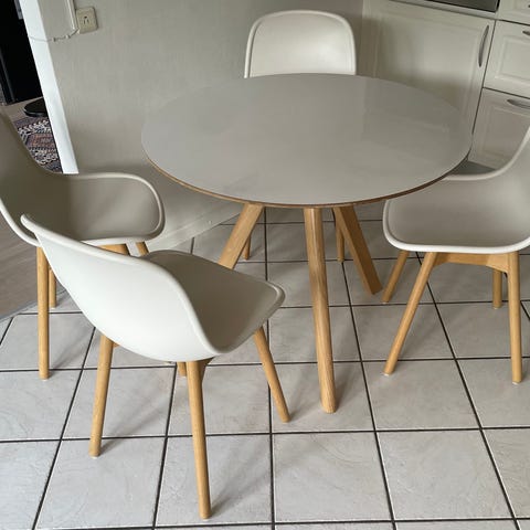 Spisebord i brun Emperador-marmor + 5 Hay-stole (AAC26)