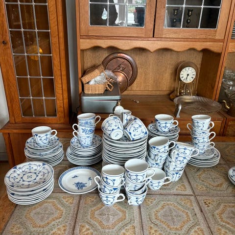 Musselmalet Riflet 17 kopper 22 sidetallerkener 8 underkopper