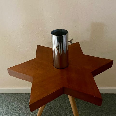 Motiver er skåret i relief. 😊farverne er pæne uden slid. Taburetten er fra 1970 erne mener det er teaktræ. Sender gerne mod porto betalt.
