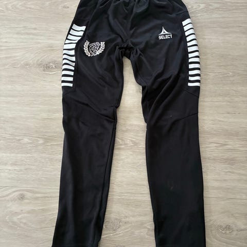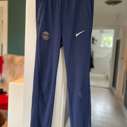Nike Børn Fodbold Bukser i størrelse 158 - 170 cm - XL. Bukserne er sorte med elastisk talje og har hvide detaljer bagpå under knæene.