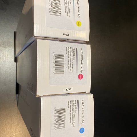 Rød og blå er uåbnede og sort og gul er åbnede, men ubrugte. Det er et fejlkøb. Nypris 1938 kr. Sælges for 1000 kr.
