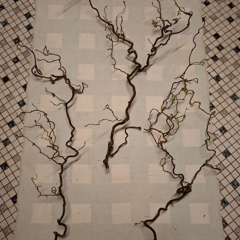 Et stort bundt troldegrene, tykke, tynde, lange og korte. Ubrugt