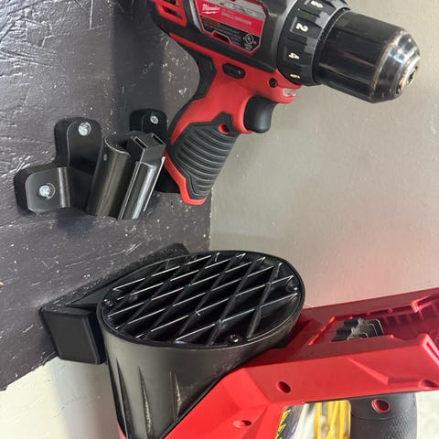 3D-printede værktøjsholdere designet til Milwaukee værktøj. Passer perfekt til pegboards eller Wall Control. Gør din arbejdsplads mere organiseret og overskuelig.