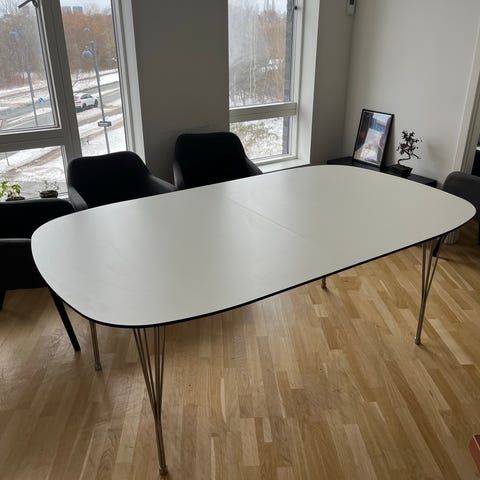 Flot bord med elipseformet bordplade.
