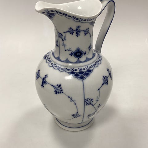 Royal Copenhagen nr 1130, helblonde musselmalet lille kaffekande, djævlekande med defekt låg. Og en lille brun plet -se foto 6. Moccakande, mokkakande, portionskande.