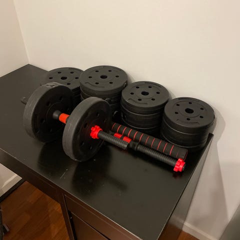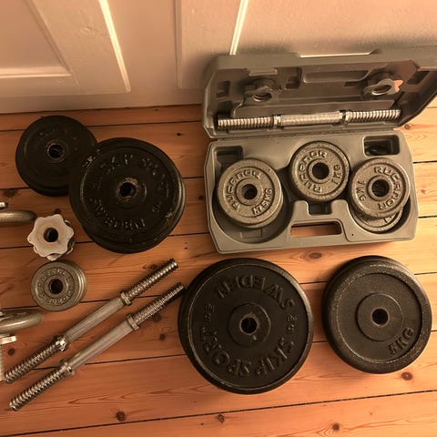 Justerbare håndvægte sæt med vægtskiver og metalstænger