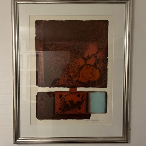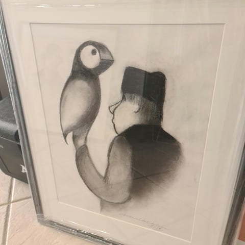 Albert Bertelsen kul tegning på gult papir. Et specielt papir han brugte en overgang, Skal ses i virkeligheden. 70x72 cm rammemål.