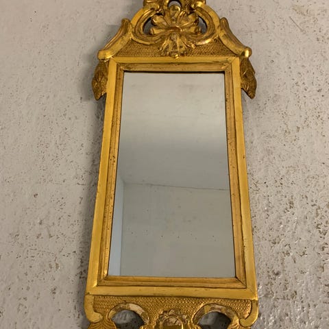 Antik dekorativ vægspejl i forgyldt gips