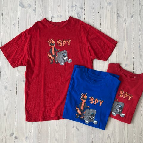 Original Mr Spyplant T-shirts i sort (den blå er solgt). Trykkene er lidt slidt, men ellers er de i fin stand.