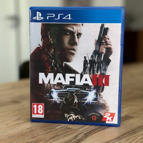 2K Mafia III Playstation 4 spil. Inkluderer action- og eventyrspil med en voksen aldersgrænse på 18 år. Spillet foregår i 1968 i New Bordeaux, Louisiana, med fokus på historier om kriminalitet og hævn.
