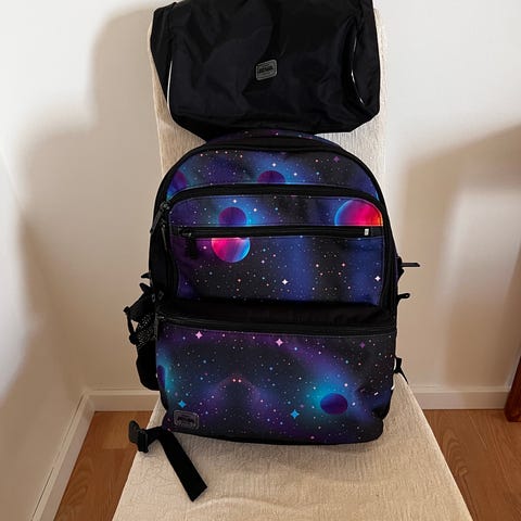 JEVA skoletaske med gymnastikpose, flaskeholder og 5 store rum 3 mindre rum.
