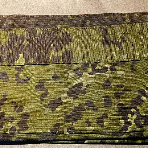 Mil-Tec KampudstyrHMAK Taske i grøn camouflage mønster. Tasken har en lukning med spænde og flere stropper på bagsiden til fastgørelse. Materialet er robust og egnet til udendørs brug. Tasken er designet til at bære mindre genstande og kan fastgøres til andet udstyr eller bælte.militær vandflaske