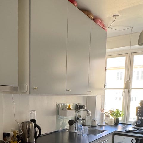 Metod overskabsstel til køl/frys. 60x60x40 cm. Det er samlet (uden dækpladerne bagerst), men det skulle ikke bruges alligevel og har derfor stået gemt væk et par år - derfor manglende billede.