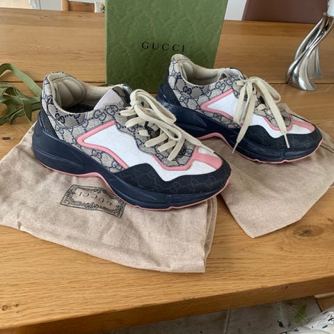 Ekstra snørebånd medfølger. Købt i Gucci i Hamburg. Kvittering haves. Alt medfølger.