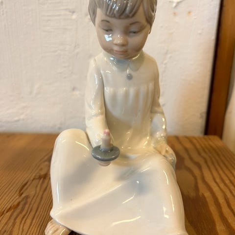 Lladro porcelænsfigur – pige med hund, ca. 22 cm
