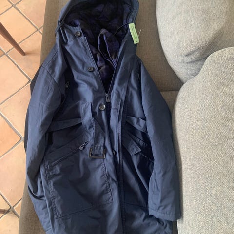Sort TECH frakke med hætte, lækkert for, lynlås og knapper. Vind og vandtæt med 5 lommer med knaplukning samt inderlommer.
