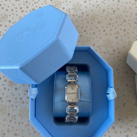 Der er kvittering til ringen, da den er købt direkte fra Swarovski, men ikke til armbånd og halskæde, da de er købt i to forskellige lufthavne.