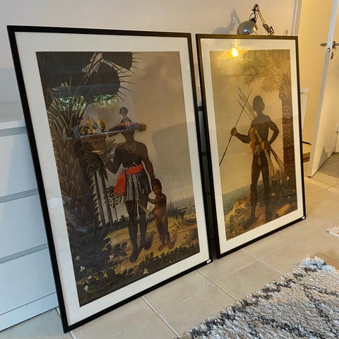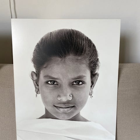 Sort-hvid portrætplakat på canvas. En afrikansk kvinde iført traditionelle smykker og halskæder.