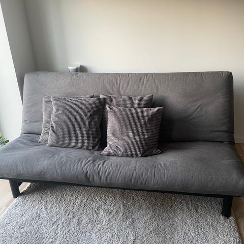 Dejlig velholdt sovesofa/Futon briks (fra Innovation C2) til ungdomsværelset med 2 armpuder , Fuji campaign lux madras - ny pris ca. 4000 kr.