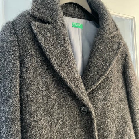 Elegant frakke i en lys nuance med en luksuriøs, plysset krave. Frakken har en klassisk silhuet med lange ærmer, lommer foran og en knaplukning, der giver et sofistikeret udtryk.