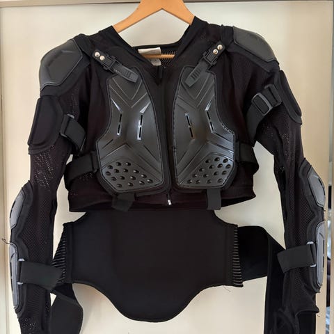 Har denne brynje i str.Small som kun er brugt få gange. Er let og behagelig, at have på og køre med på især de varme dage.