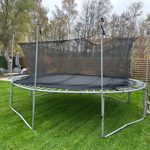 Salta premium Black edition. God stor trampolin. Perfekt til nedgravning. Hul i net og slidtage nogle steder. Kom og kig. Skil den ad og tag den med hjem for 300kr. Samlevejledning medfølger. Diameter på 366cm.