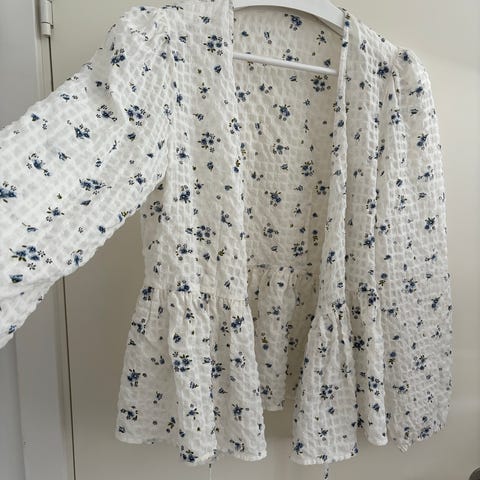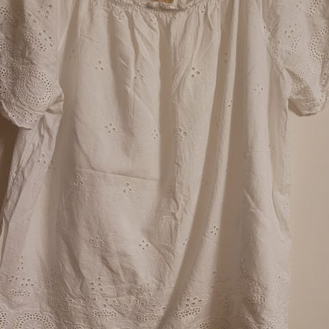 Super sød hvid bluse med blonder, en lille stjerne med sten, der mangler 4 sten⭐️