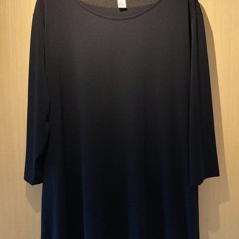 Den er løs i snittet med bådformet halsudskæring og 3/4-flagermus ærmer.