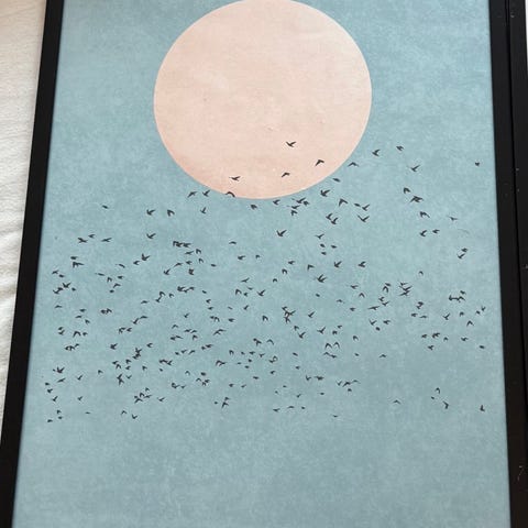 Sort plakat med måne motiv. Trykt på tykt brunt pap. Har aldrig været hængt op. Teksten er: MOON that's one small step for man, one giant leap for mankind.