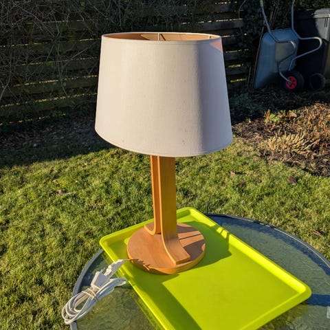 en flot lampe med lysdæmper. En lille ubetydelig bulle. Virker fint. 27 cm, uden skærm