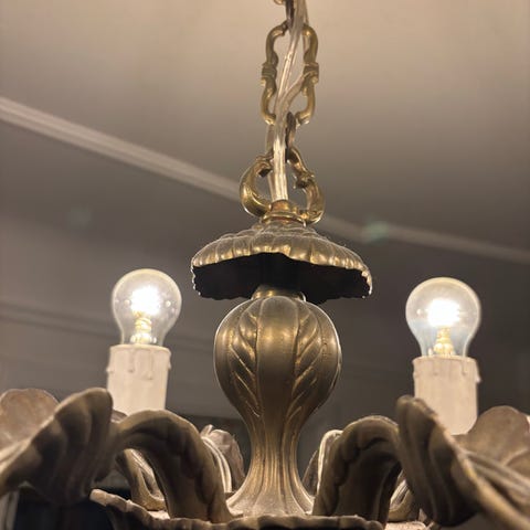 Lysekrone, Massiv elektrisk Messing lysekrone med 6 arme sælges, er rimelig tung.