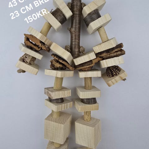 Mit håndlavede fuglelegetøj er designet til at holde fuglen beskæftiget, glad og sund – og samtidig ser det flot ud i buret. Alt er lavet i hånden af naturlige og sikre materialer.