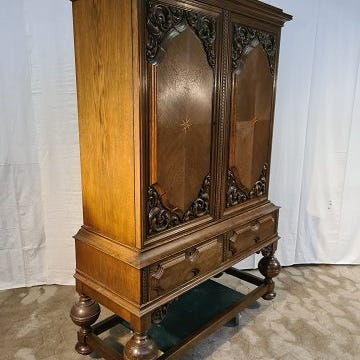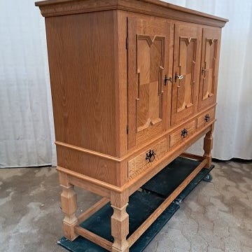 Dækketøjsskab i fineret egetræ, fra 1930erne.