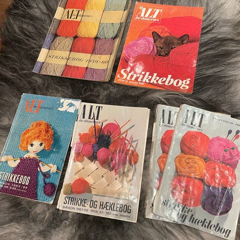Sally's Strikkehæfter med forskellige strikkeopskrifter, herunder strik til børn og voksne, vest, hækling og andre håndarbejdsprojekter. Indeholder opskrifter, vejledninger og mønstre til forskelligt tøj og størrelser.