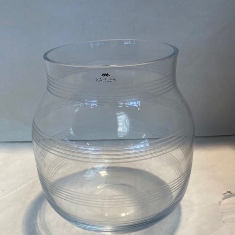 Produktet er en glaseret keramik vase med en glat overflade og en cylindrisk form. Den har en lys glans.,Afhentes i:,Røde Kors Holstebro (661),Bemærk at mail, chat og beskeder ikke besvares, og varen skal købes på knappen "Gå til varen"